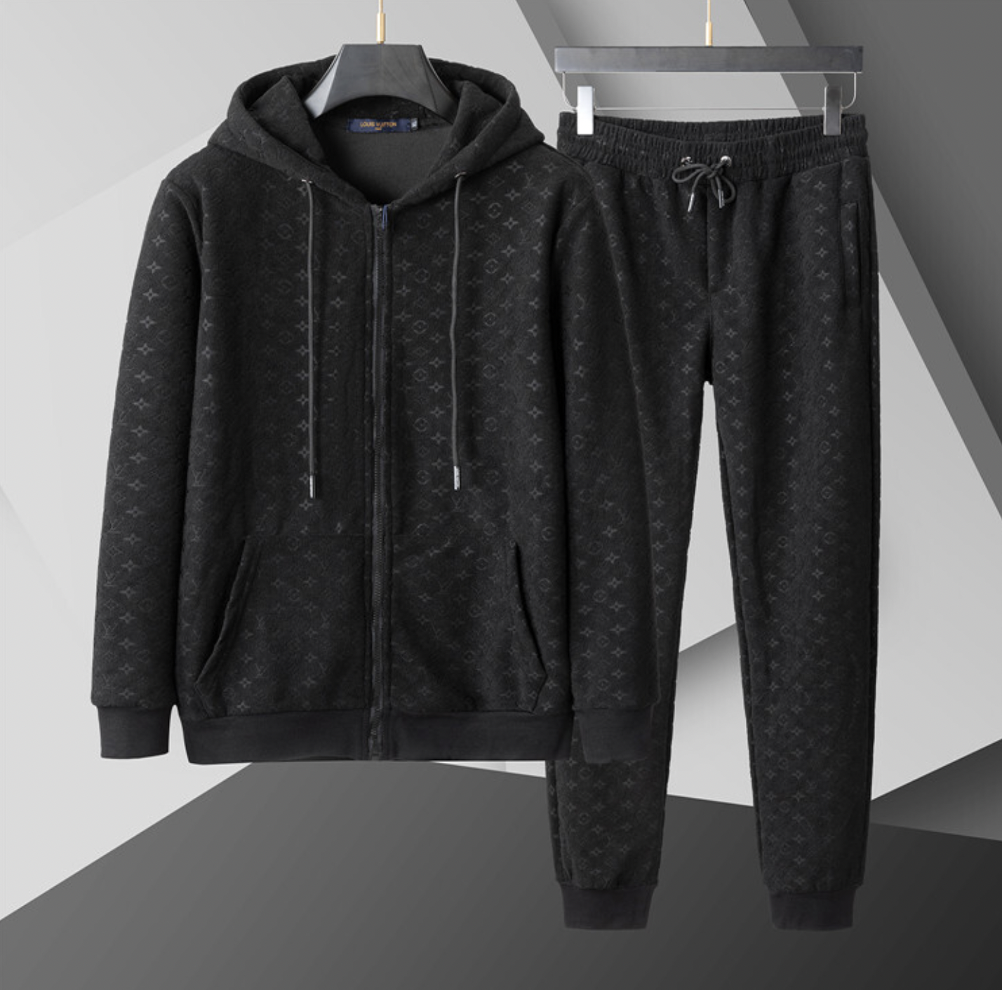 The Prestige Monogram Tracksuit brings luxury-inspired streetwear to your everyday wardrobe. Featuring an iconic monogram pattern and a clean full-zip jacket, this set delivers a premium look without trying too hard.